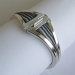 Zilveren halssieraad van vierkant materiaal, 1e gehalte (925). Hieraan is een object van wit-blauw porselein (Petrus Griepink) bevestigd, dat is opgesloten in een zilveren band. Hoogglans gepolijst, uitgevoerd met magnetische sluiting. (autonoom S1183, max.1)