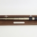 Drager van eikenhout, te gebruiken zowel aan de wand als op tafel. De telescoop wordt gedragen door twee ankervormige beugels van zilver. Deze zijn bevestigd aan twee zilveren scharnierpunten op de drager. hierdoor wordt de scheepstelescoop in beide posities op identieke wijze door de beugels ondersteund. Het zilver is hoogglans gepolijst. (ontwerpopdracht O0041)