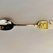 Theelepeltje met zilveren bak en steel. Het gouden schild wordt gedragen door een zilveren eenhoorn. Op het schild de ruimtelijke hoorn met ophanglus en kwastjes. Hoogglans gepolijst. (ontwerpopdracht O0046)